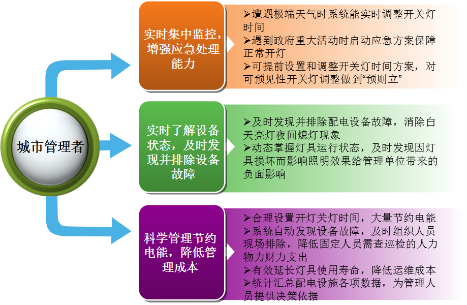 強應急能力:系統(tǒng)具有定時控制和人工控制等多種控制方式,能隨時調整燈光的開/關燈時間,實現(xiàn)轄區(qū)范圍內的全夜燈、半夜燈開/關燈自動控制。在特殊的天氣情況時能通過人工控制進行應急調度。