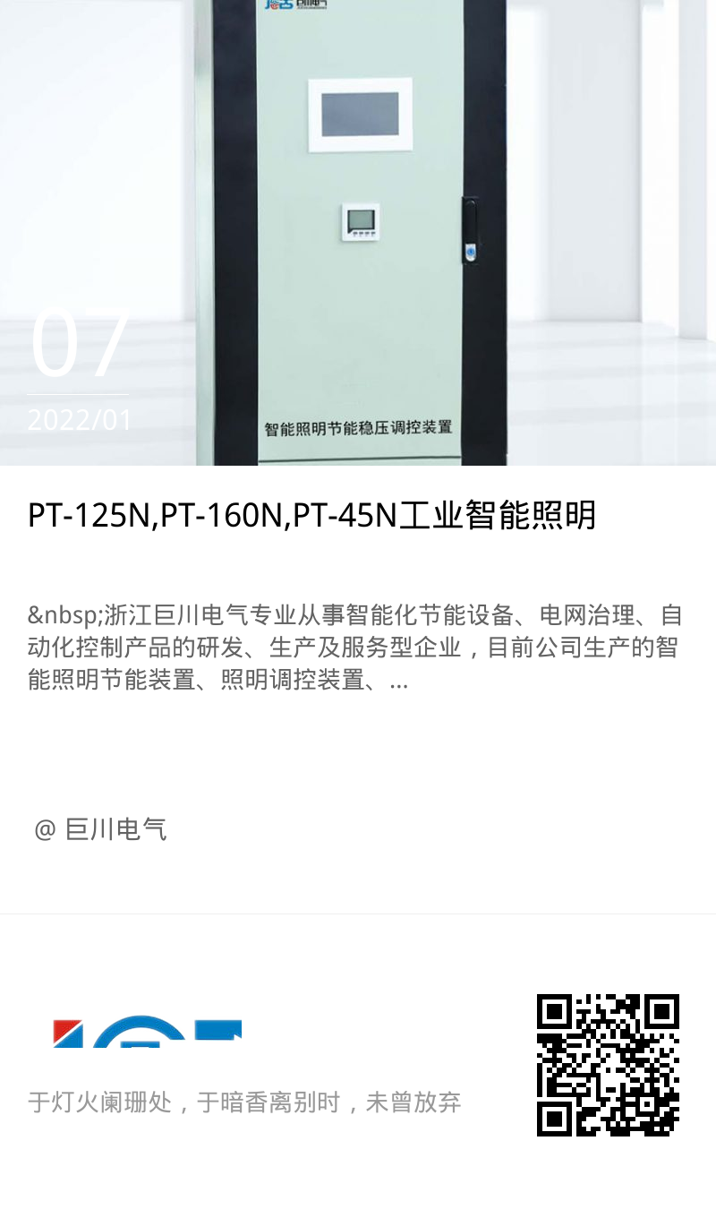 浙江巨川電氣專業(yè)從事智能化節(jié)能設(shè)備、電網(wǎng)治理、自動(dòng)化控制產(chǎn)品的研發(fā)、生產(chǎn)及服務(wù)型企業(yè),目前公司生產(chǎn)的智能照明節(jié)能裝置、照明調(diào)控裝置、路燈節(jié)能控制柜、城市照明監(jiān)控管理系統(tǒng)、調(diào)光控制器、天文鐘經(jīng)緯時(shí)控器、智能照明控制器、用電遠(yuǎn)程節(jié)能裝置、無觸點(diǎn)電力穩(wěn)壓節(jié)能裝置、智能配電控制柜等產(chǎn)品多用于工廠節(jié)能改造方案,街道路燈節(jié)能改造方案。