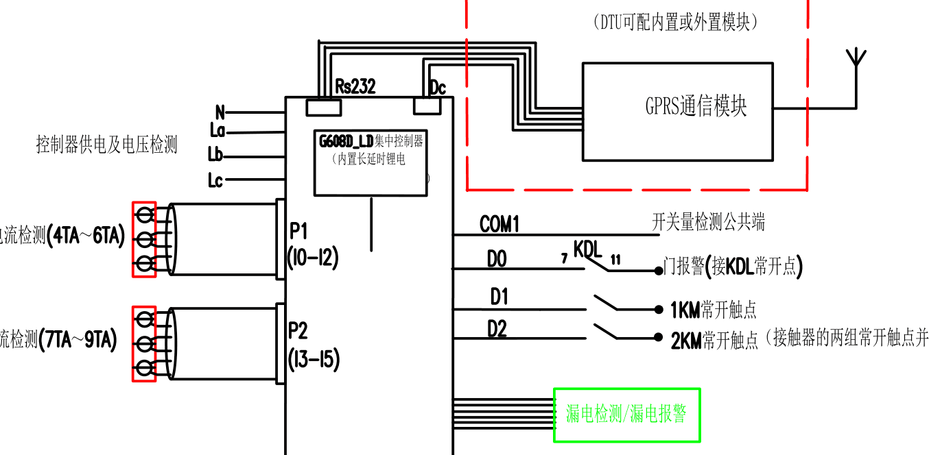 基于以上特點(diǎn),在設(shè)計(jì)路燈電纜防盜時(shí),將產(chǎn)品分為兩部分:①電纜防盜末端是由一個(gè)開關(guān)電源和部分控制元器件組成,安裝在電纜的末端。無論路燈電纜有電還是沒電,都能為GPRS監(jiān)控主機(jī)提供相應(yīng)的在線信號。②電纜防盜檢測模塊,安裝在變壓器配電柜內(nèi),每個(gè)模塊具有2路電纜檢測輸出接點(diǎn),每臺主機(jī)最多可擴(kuò)展至 24路電纜檢測,電纜有電檢測電流、無電檢測通斷??梢詢?nèi)置備用電源,在電纜無供電的情況下使用,實(shí)現(xiàn)全天候24小時(shí)監(jiān)控,白天路燈電纜無電時(shí)也可監(jiān)控。