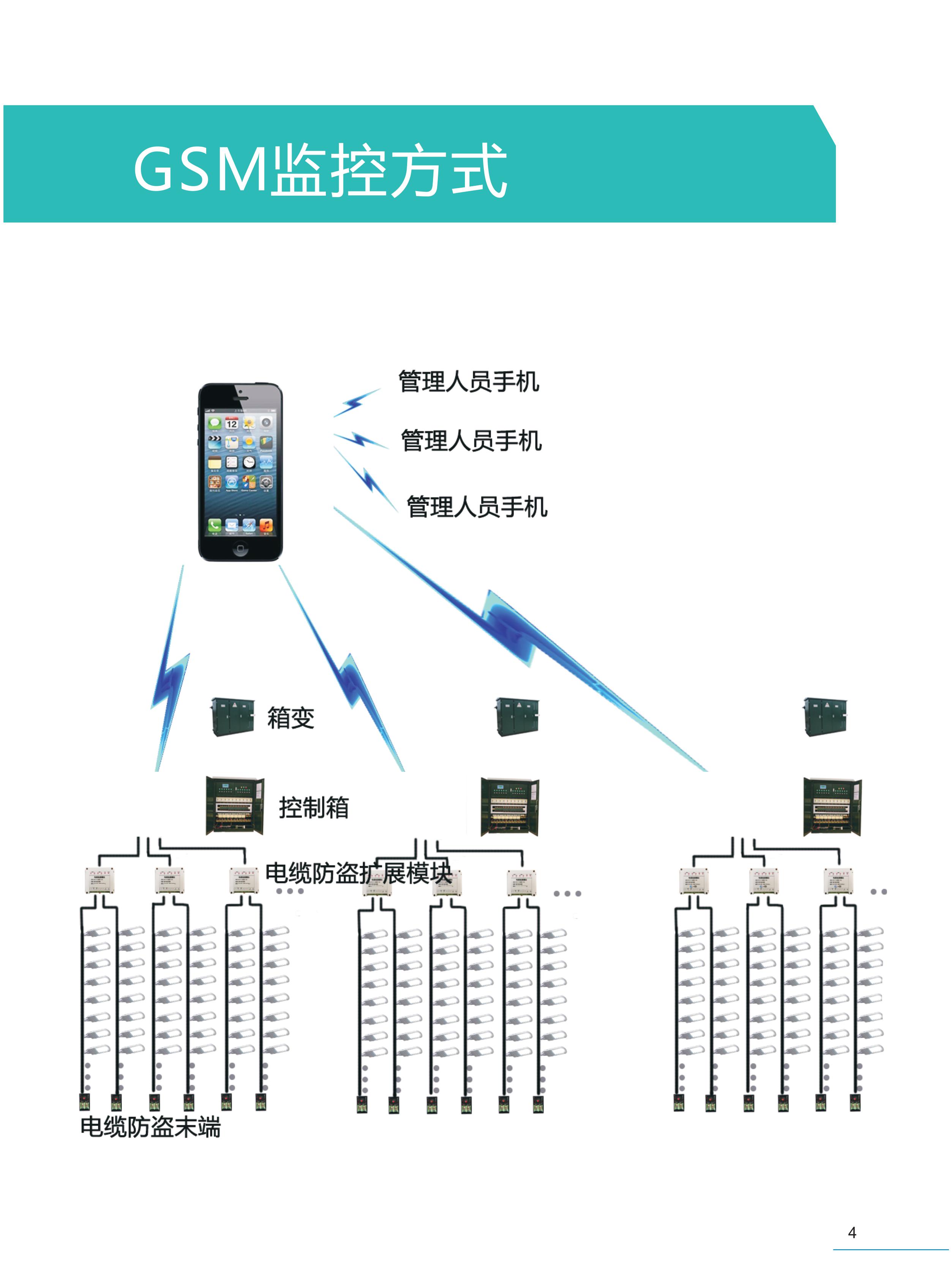 路燈照明電纜防盜裝置采用的GSM電線電纜防盜報(bào)警系統(tǒng)。是利用GSM短信息數(shù)據(jù)傳輸模式及語音功能平臺完成智能報(bào)警數(shù)據(jù)遠(yuǎn)程傳輸及控制,防止供電設(shè)備和電纜線路的被剪斷、盜竊和破壞。該軟件將路燈(亮化燈、廣告燈、裝飾燈)燈不同燈型的監(jiān)控和數(shù)據(jù)采集、處理融于一體。通過群控或是單控實(shí)現(xiàn)不同燈型的控制,也可以根據(jù)不同的時(shí)間(經(jīng)緯度控制、星期節(jié)假日、全夜燈、半夜燈)和光照度進(jìn)行控制。分主機(jī)和從機(jī)使用。主機(jī)可指定安裝在監(jiān)控中心本機(jī)可獨(dú)立使用,亦可與接警聯(lián)網(wǎng)使用。