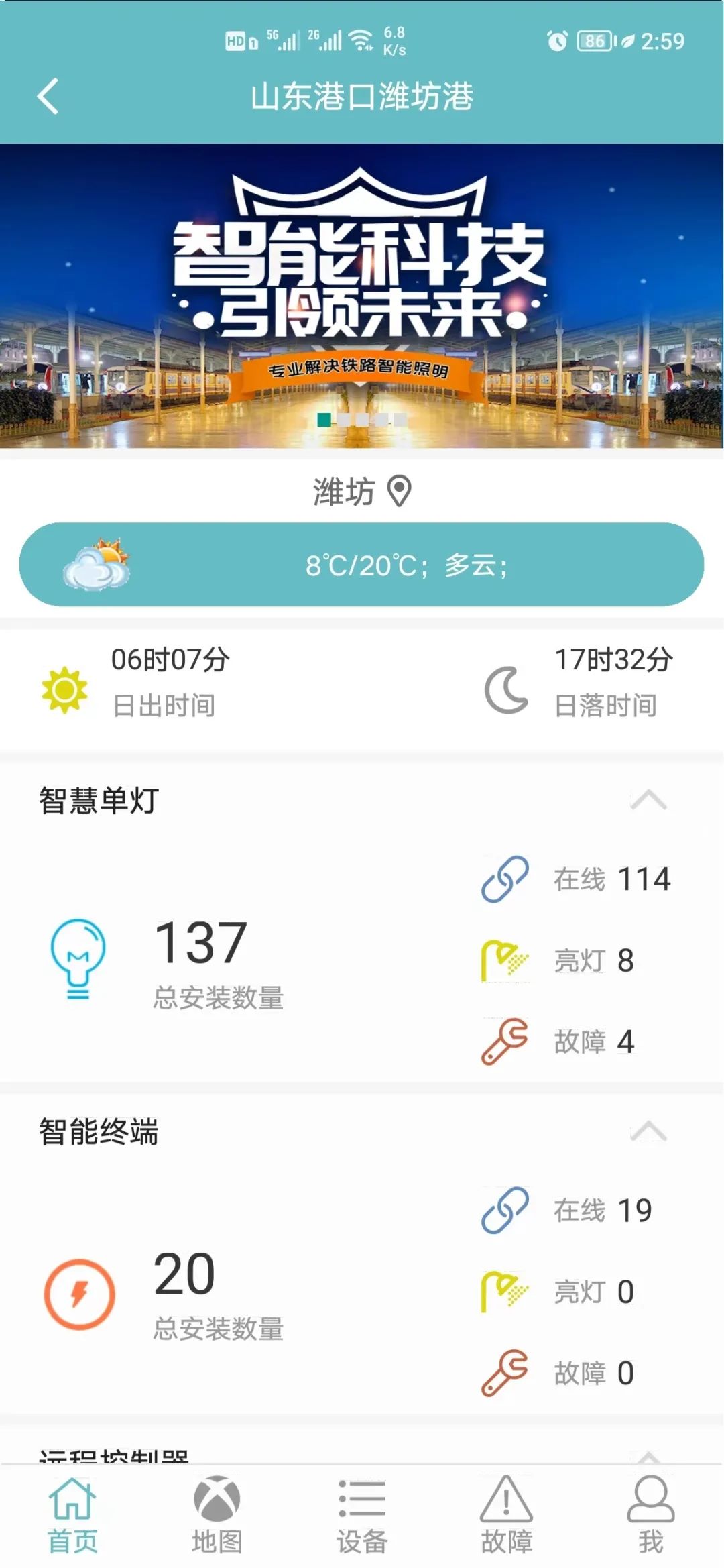 濰坊港區(qū)道路照明系統(tǒng)和碼頭前沿作業(yè)照明系統(tǒng)共130余盞,每年需消耗電能約84萬千瓦時,由于采用電腦后臺時控開關(guān)控制,常常因季節(jié)變化等因素的影響,造成一定程度的浪費(fèi)。為此,機(jī)械大隊圍繞如何更好的進(jìn)行精益管理、降低成本,開展創(chuàng)新創(chuàng)效,實施照明系統(tǒng)的物聯(lián)網(wǎng)應(yīng)用、智能化改造。