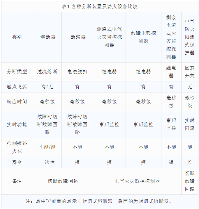 電氣防火限流式保護器與各分斷裝置防火性能對比