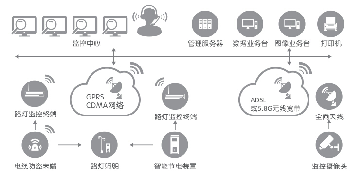 本次項目為分批建設,計劃分3次將全區(qū)范圍內(nèi)路燈監(jiān)控和漏電監(jiān)控系統(tǒng)建設完畢。本次主要針對轄區(qū)內(nèi)3條主要路段9臺箱變進行安裝路燈監(jiān)控終端和漏電檢測終端。