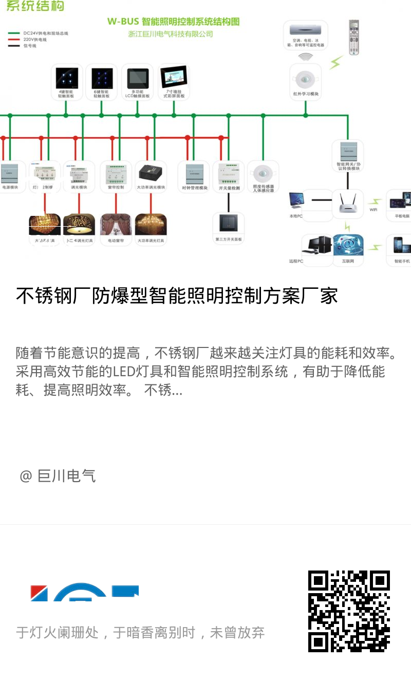巨川電氣基于物聯(lián)網(wǎng)智能感知、無線通訊等技術(shù),通過大量智能照明控制終端,實時、準(zhǔn)確、全面地監(jiān)控廠區(qū)的照明設(shè)備運行狀況,實現(xiàn)對工廠不同性能車間室內(nèi)外照明設(shè)備的智能化控制以及人員工作安全得到進(jìn)一步保障。