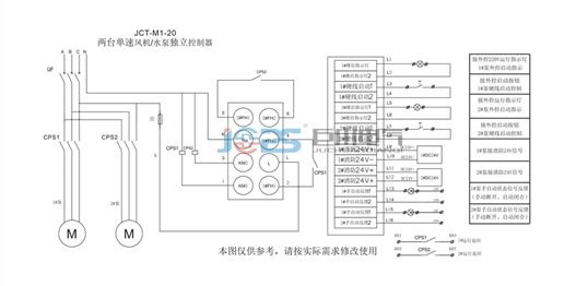 ??? JCT-M1-20 兩臺單速風(fēng)機 水泵控制器 接線原理圖