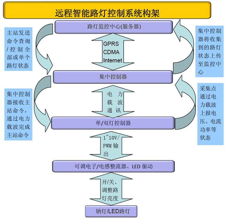 統(tǒng)一規(guī)劃:從全市路燈管理系統(tǒng)的建設(shè)需求出發(fā),統(tǒng)一規(guī)劃設(shè)計,統(tǒng)一部署,各路段、各區(qū)分級聯(lián)網(wǎng)管理,從而提高系統(tǒng)運行效率;