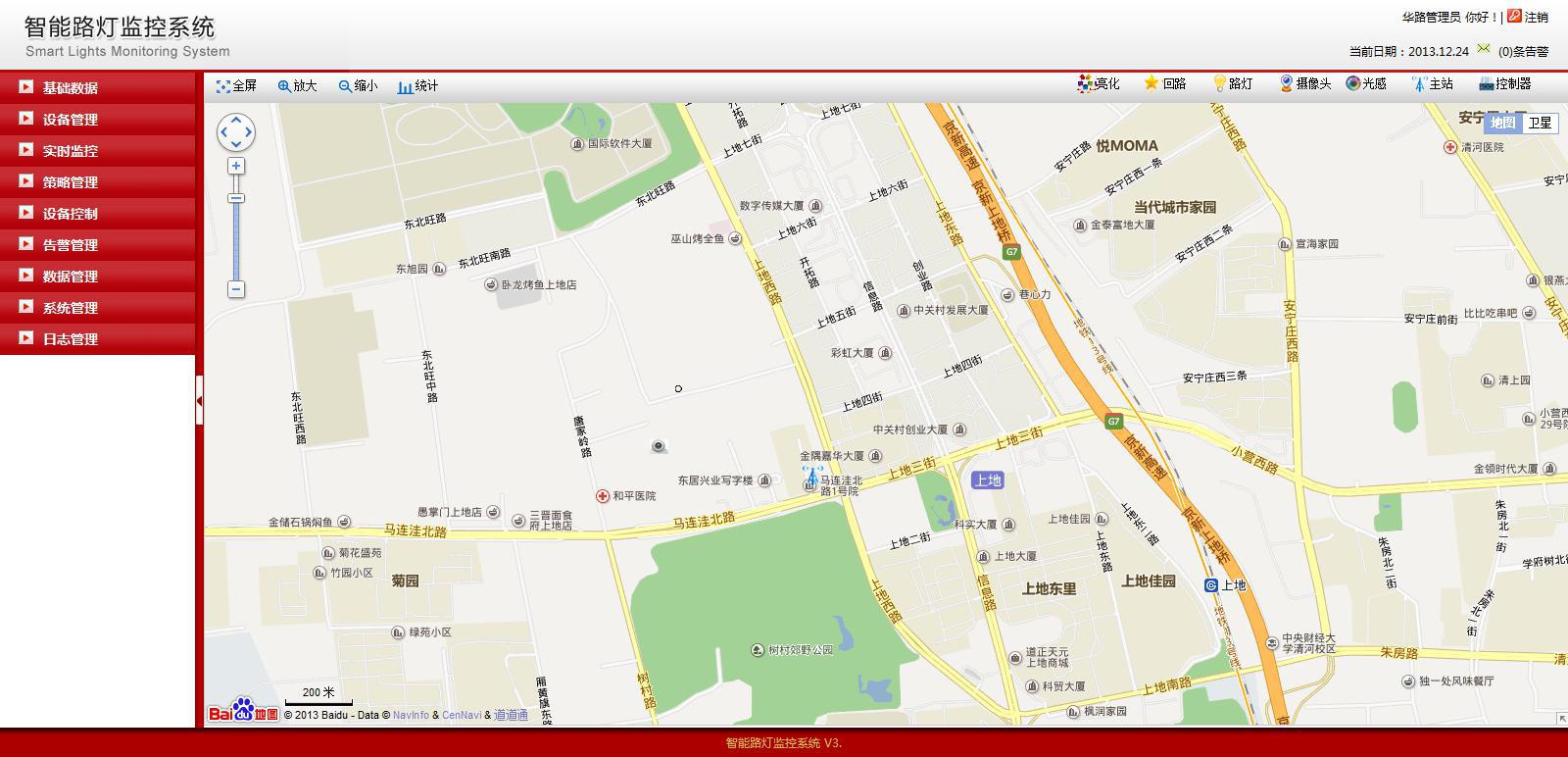 監(jiān)控軟件集成GIS地理信息系統(tǒng),可在地圖上查看和管理任意一盞路燈。