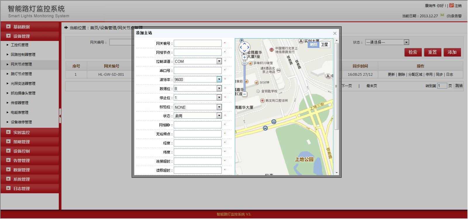監(jiān)控軟件可管理單燈控制器、集中管理器等設(shè)備,包括錄入、修改、刪除、查詢等功能。