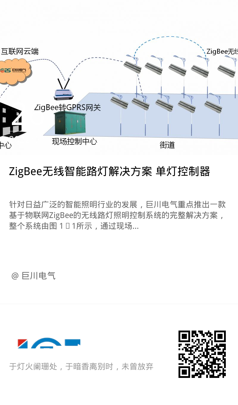 在整個(gè)路燈的安裝過程中,無(wú)需使用控制信號(hào)線,采用無(wú)線Zigbee信號(hào)作為數(shù)據(jù)傳輸,大大減少了特別是舊燈改造工程的工程量。