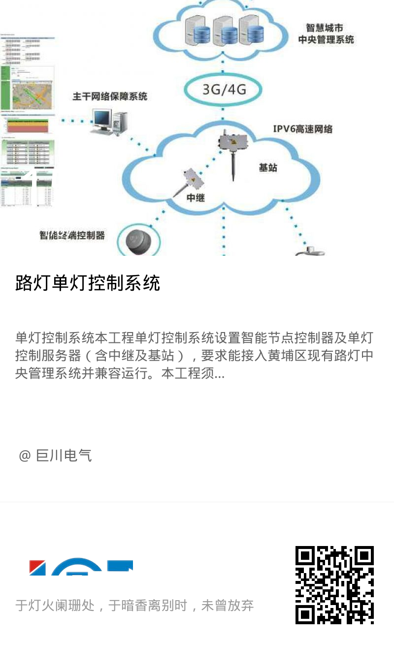本工程單燈控制系統(tǒng)設(shè)置智能節(jié)點控制器及單燈控制服務(wù)器(含中繼及基站),要求能接入黃