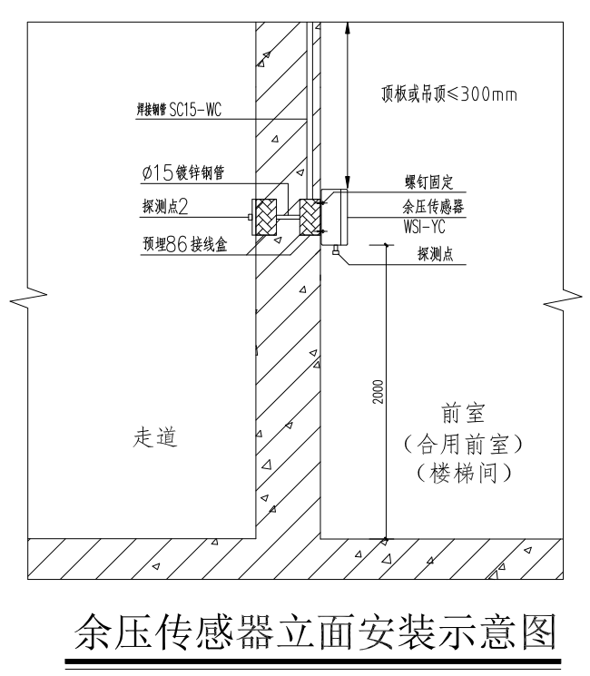 余壓傳感器立面安裝示意圖 Installation of Surplus Pressure Sensor Facade