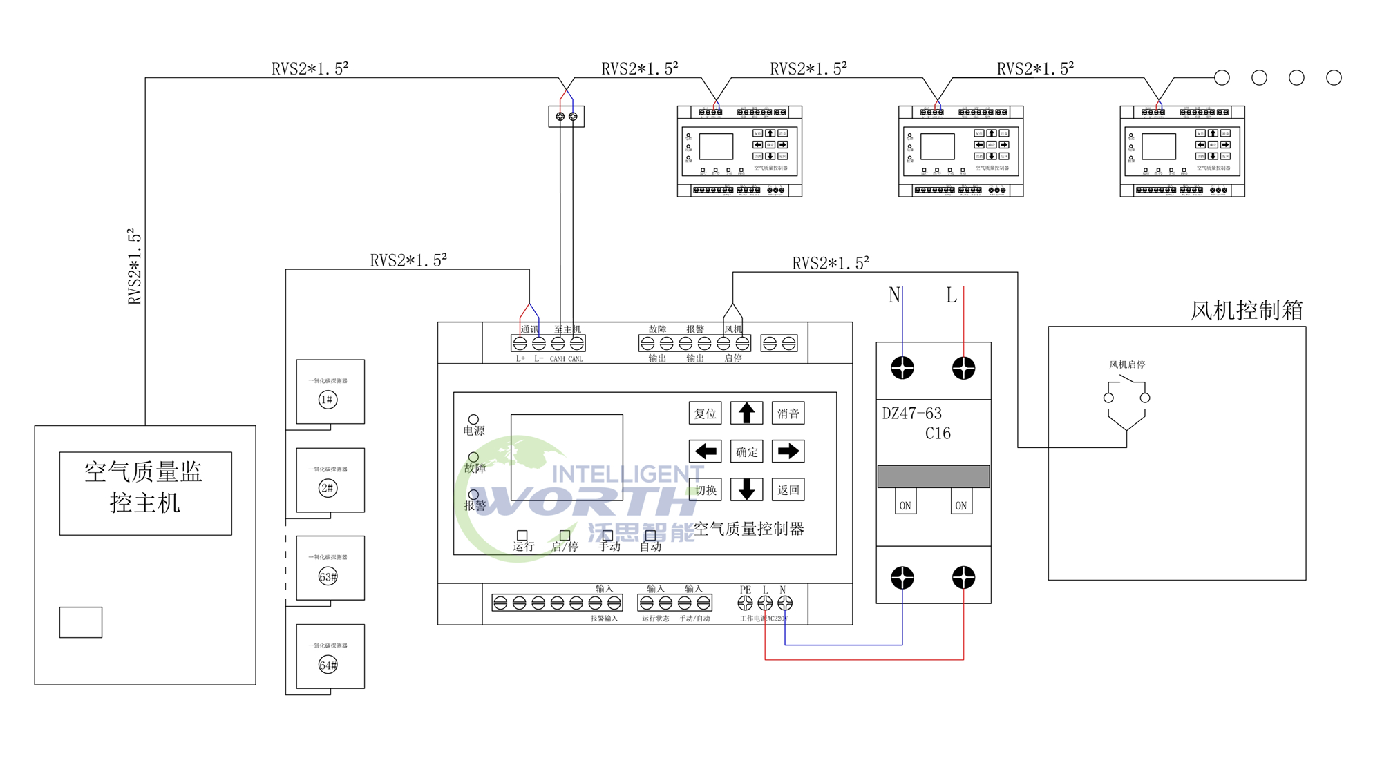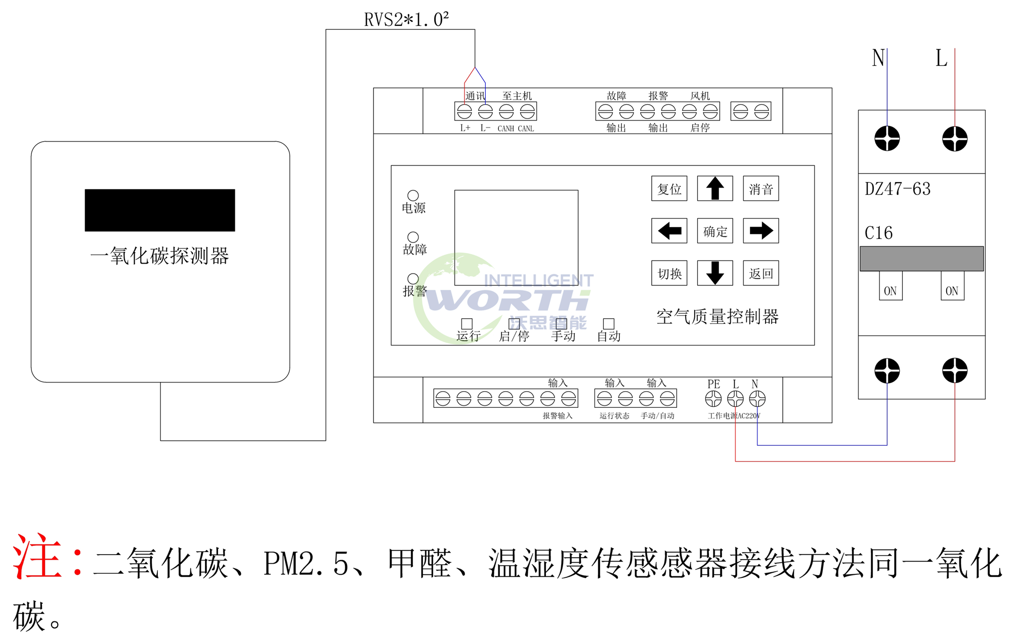 空氣質(zhì)量控制器(CO濃度監(jiān)控器)的安裝布線